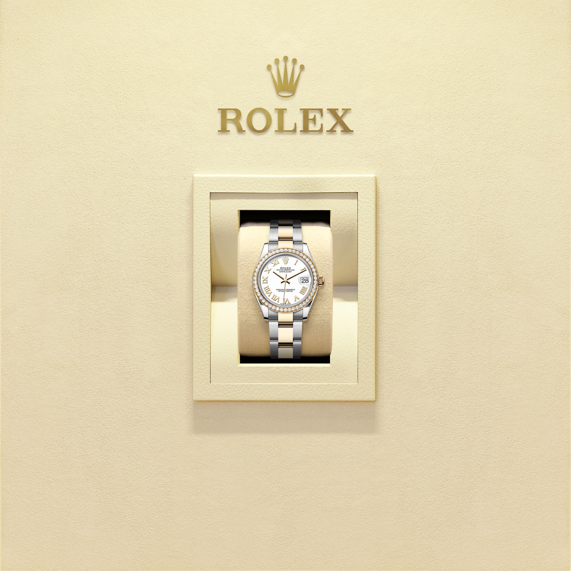 Đồng hồ Oyster Perpetual Datejust 31 bằng thép Oystersteel và vàng kim đi kèm mặt số màu trắng và dây đeo Oyster.
