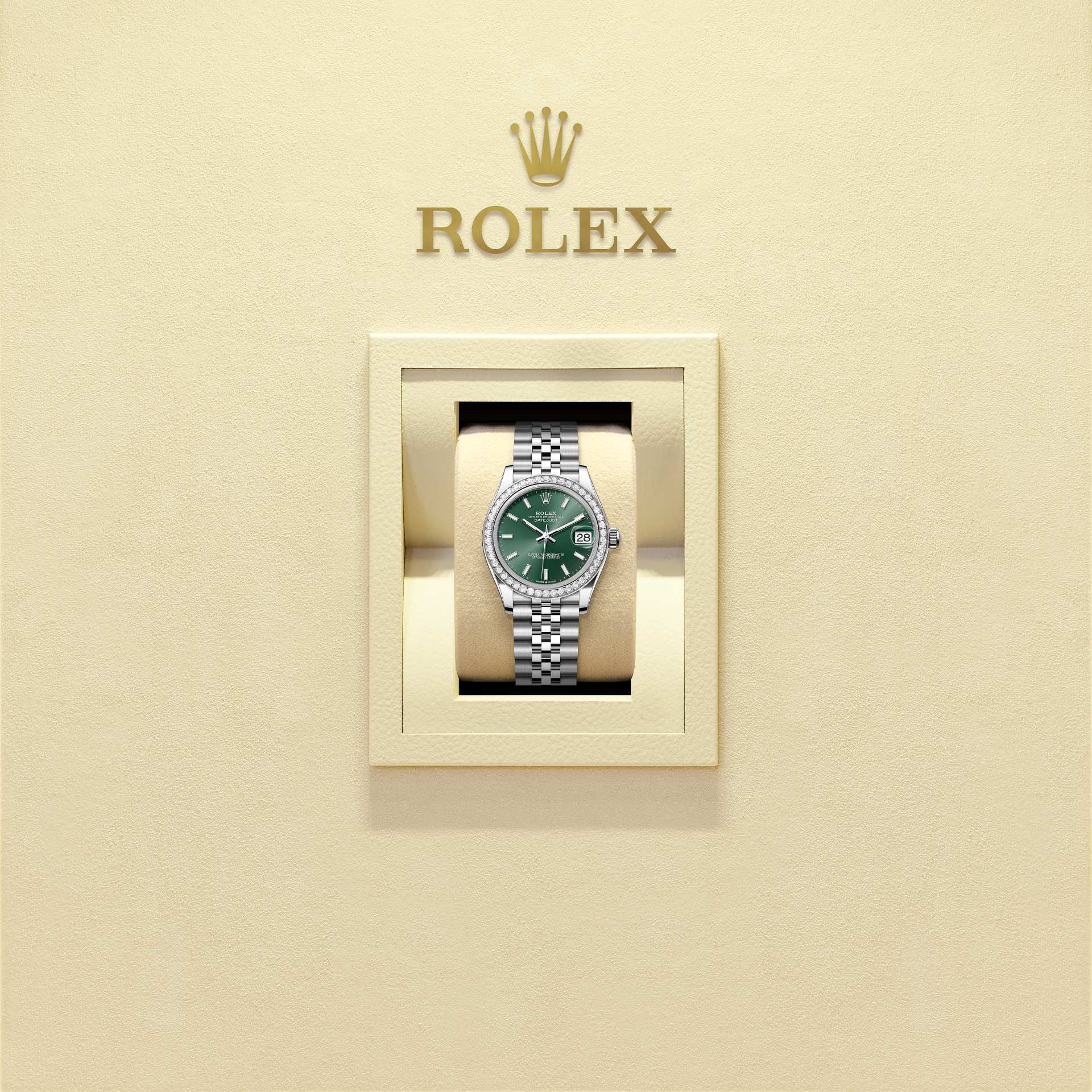 Và với mọi bộ phận của đồng hồ, tính th ẩm mỹ được đảm bảo dưới con mắt chuyên gia. Dây đeo đồng hồ kim loại Jubilee có thiết kế mềm mại và thoải mái với mối nối năm mảnh và được đặc biệt chế tác cho sự ra mắt của Oyster Perpetual Datejust vào năm 1945.