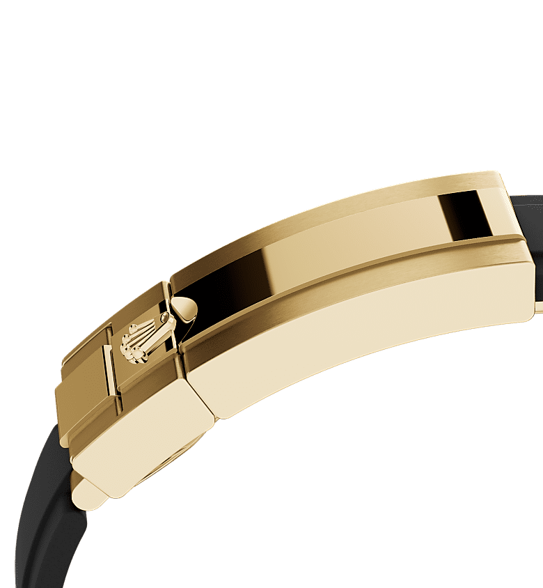 The 18 ct gold versions of the Cosmograph Daytona with a Cerachrom bezel are available with an Oysterflex bracelet. Developed by Rolex and patented, it singularly combines the robustness of a metal bracelet with the comfort of an elastomer bracelet.