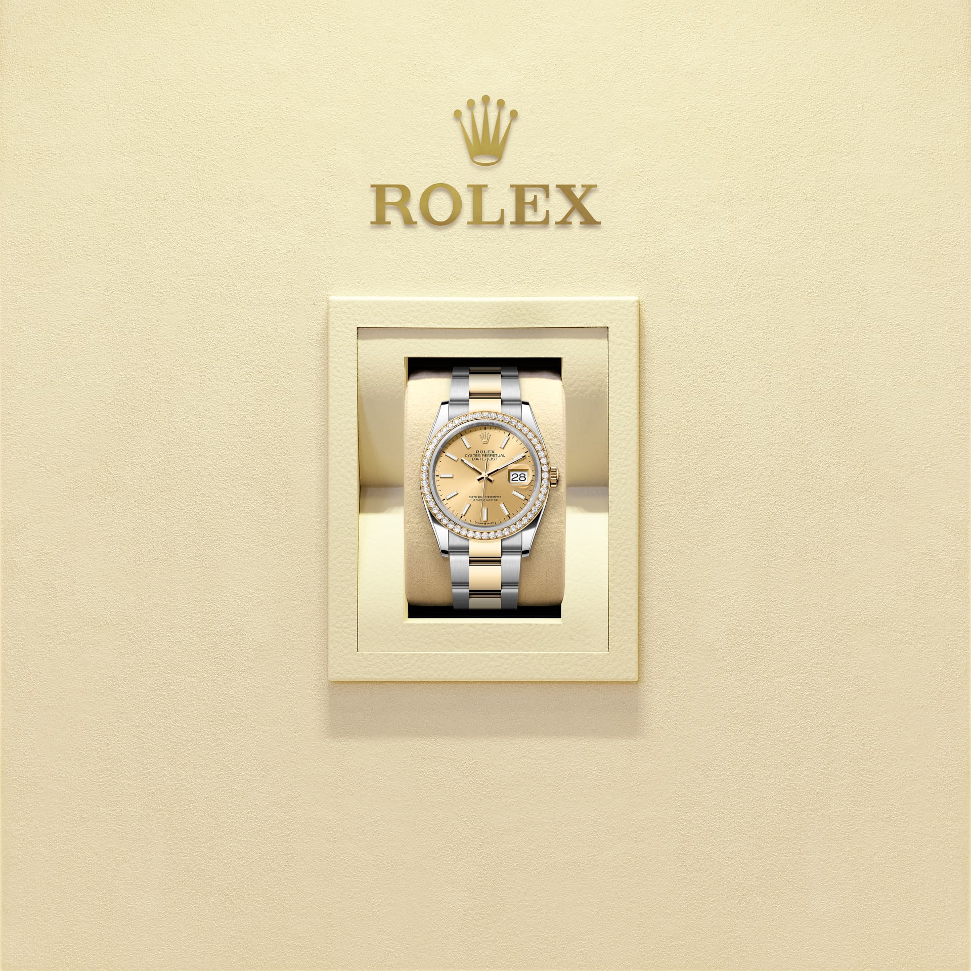 This Oyster Perpetual Datejust 36 in Oystersteel and yellow gold features a champagne-colour dial and an Oyster bracelet.