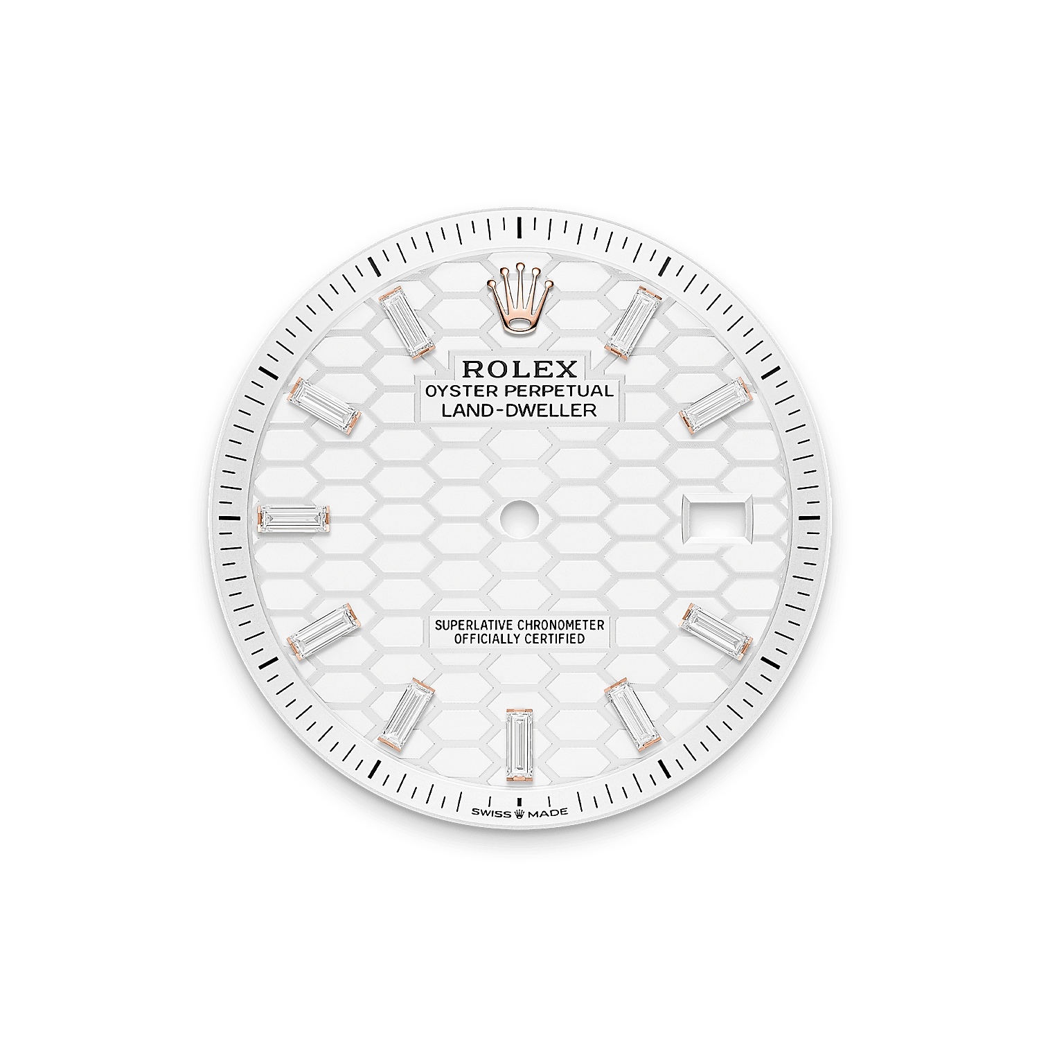The Land-Dweller 40 in 18 ct Everose gold with an intense white, honeycomb-motif, diamond-set dial and Flat Jubilee bracelet.