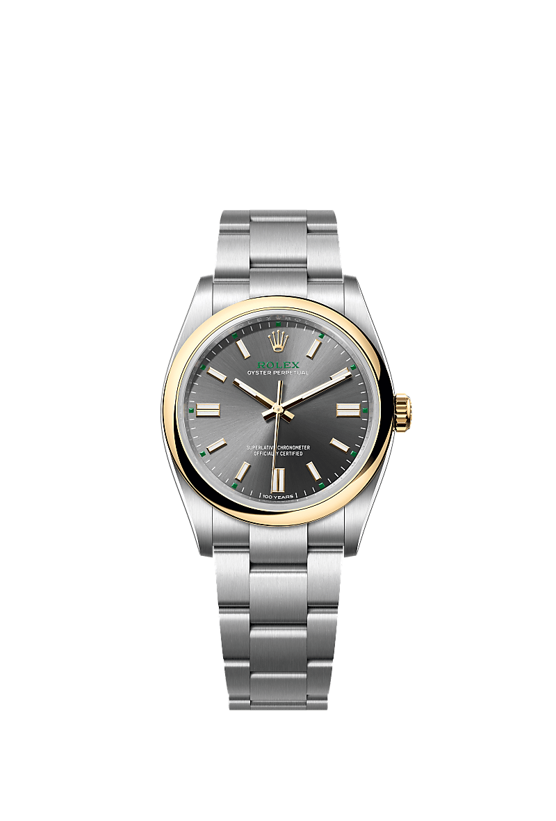 This Oyster Perpetual 36 in Oystersteel and yellow gold symbolizes the celebration of 100 years of the Oyster.