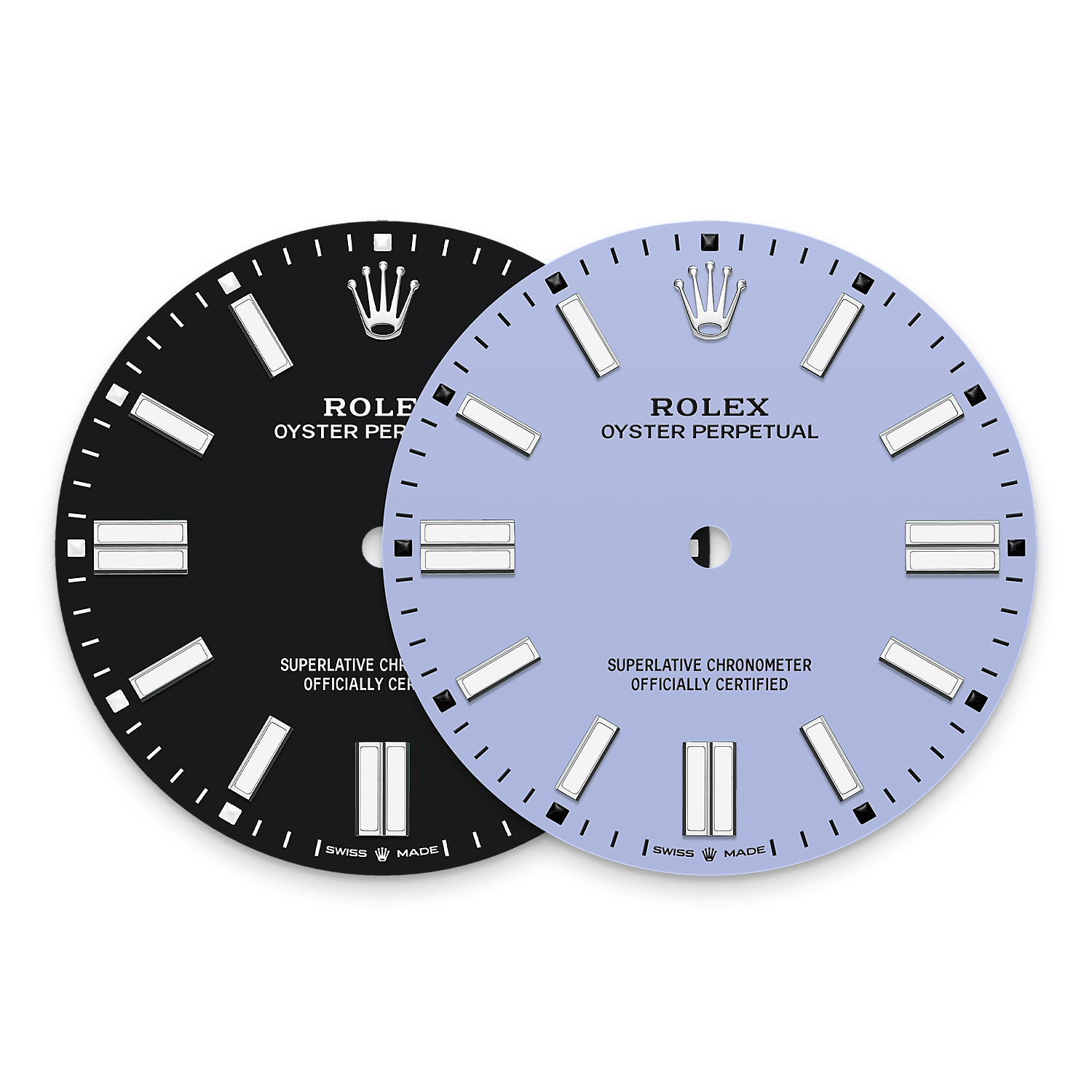 The colours created for the Oyster Perpetual range start life as a lacquer, which must be meticulously applied in a controlled-atmosphere environment to avoid dust and other contamination.