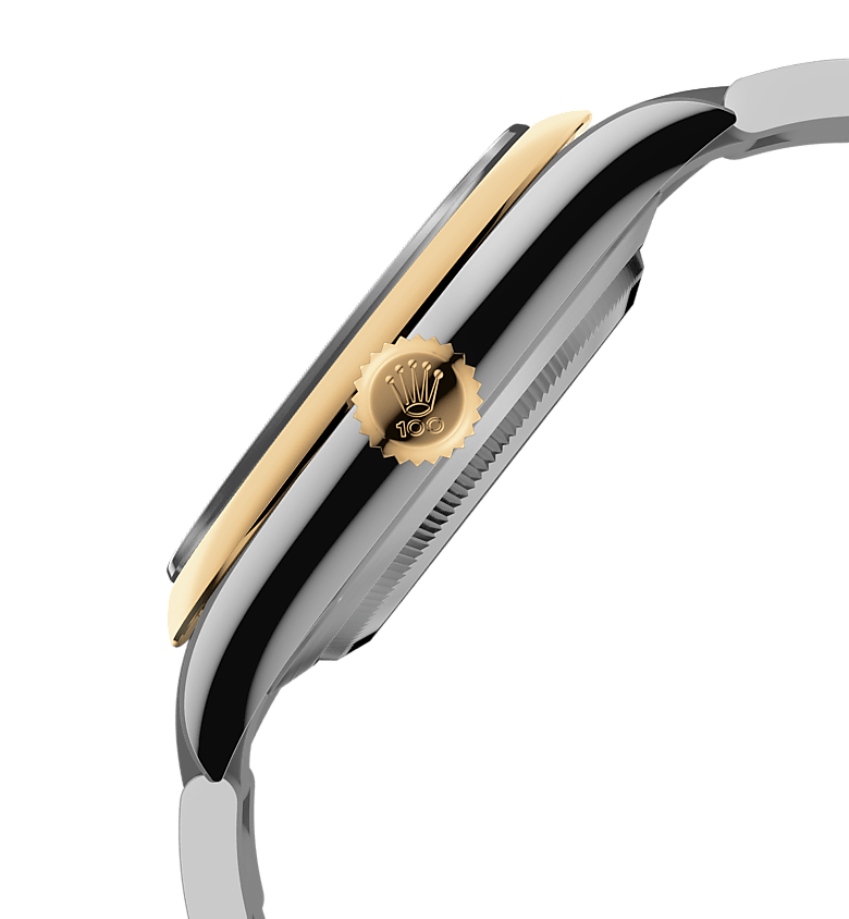 This Oyster Perpetual 41 in Oystersteel and yellow gold symbolizes the celebration of 100 years of the Oyster.