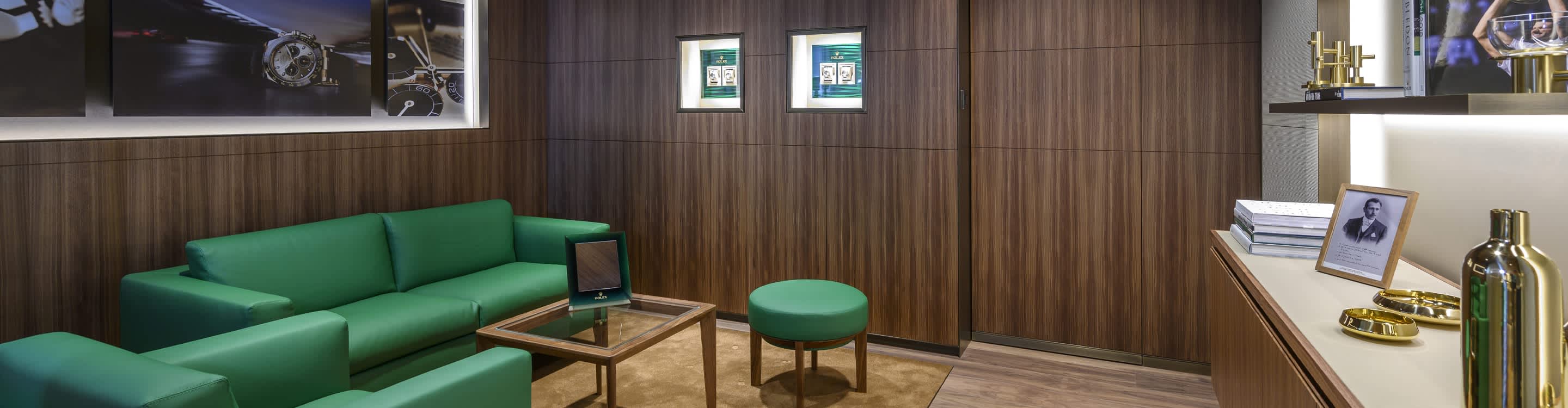 我们的专卖店均按照劳力士日内瓦所制定的室内设计概念进行装潢摆设,象征品牌与ROLEX BOUTIQUE