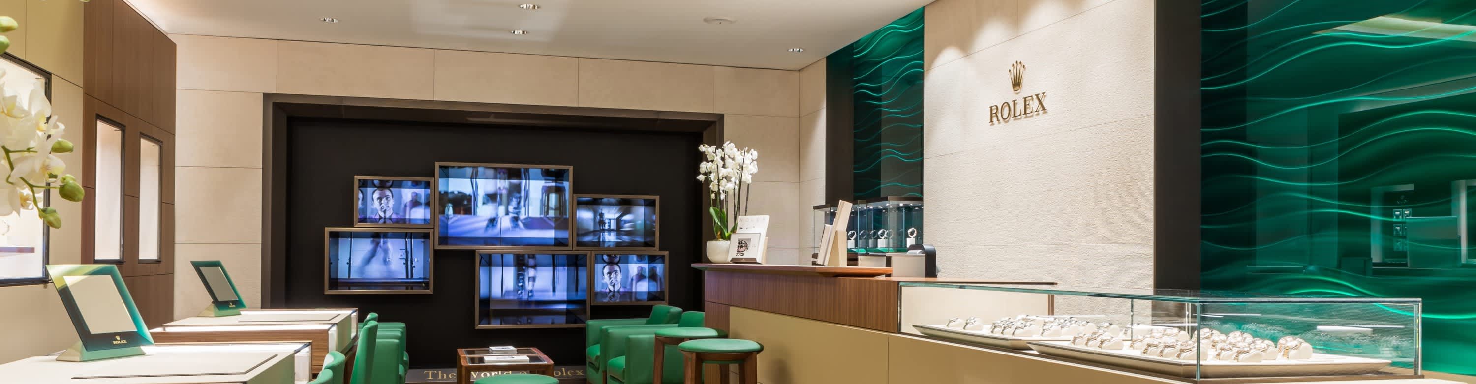 我们的专卖店均按照劳力士日内瓦所制定的室内设计概念进行装潢摆设,象征品牌与ROLEX BOUTIQUE