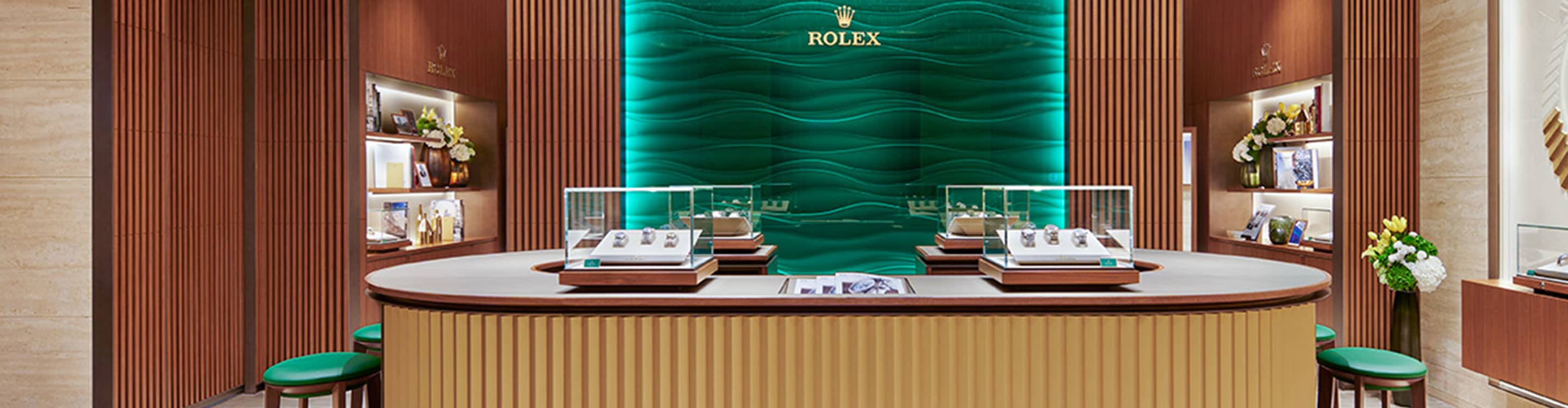 我们的专卖店均按照劳力士日内瓦所制定的室内设计概念进行装潢摆设,象征品牌与ROLEX BOUTIQUE