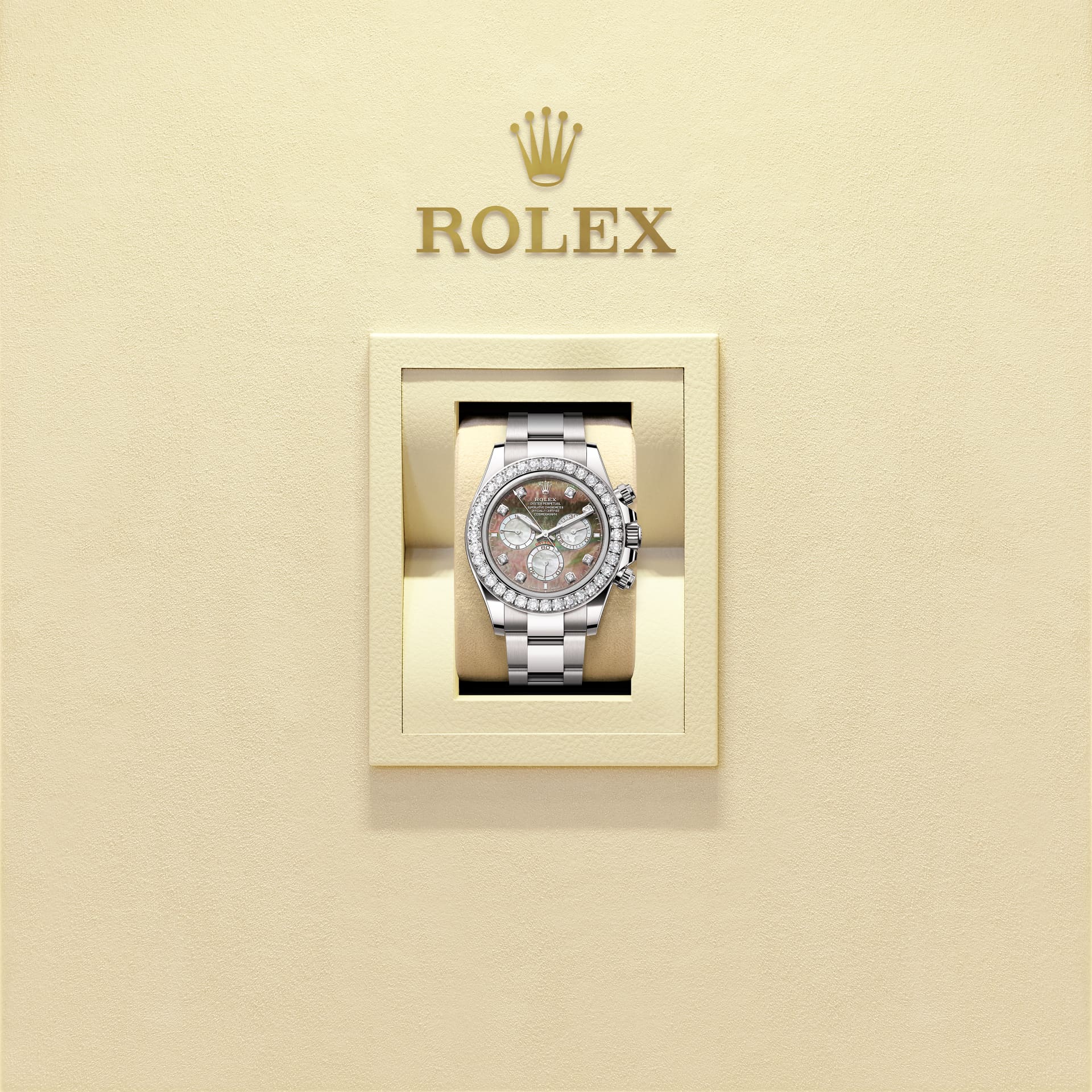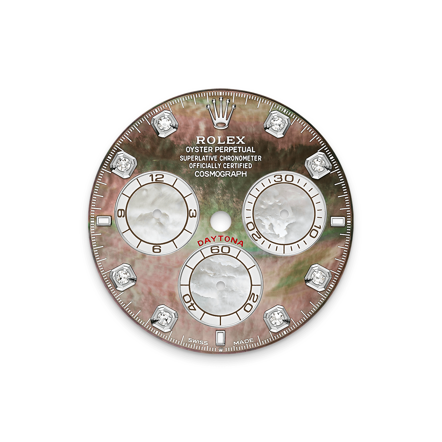 色彩对比鲜明的天然珍珠母表盘,镶嵌8颗钻石及3枚Chromalight夜光钟点标记,设计别出心裁。劳力士严格挑选上乘材质,精心塑造鲜明对比、浓郁色彩与深邃光泽。两种珍珠母均经品牌工匠悉心处理。