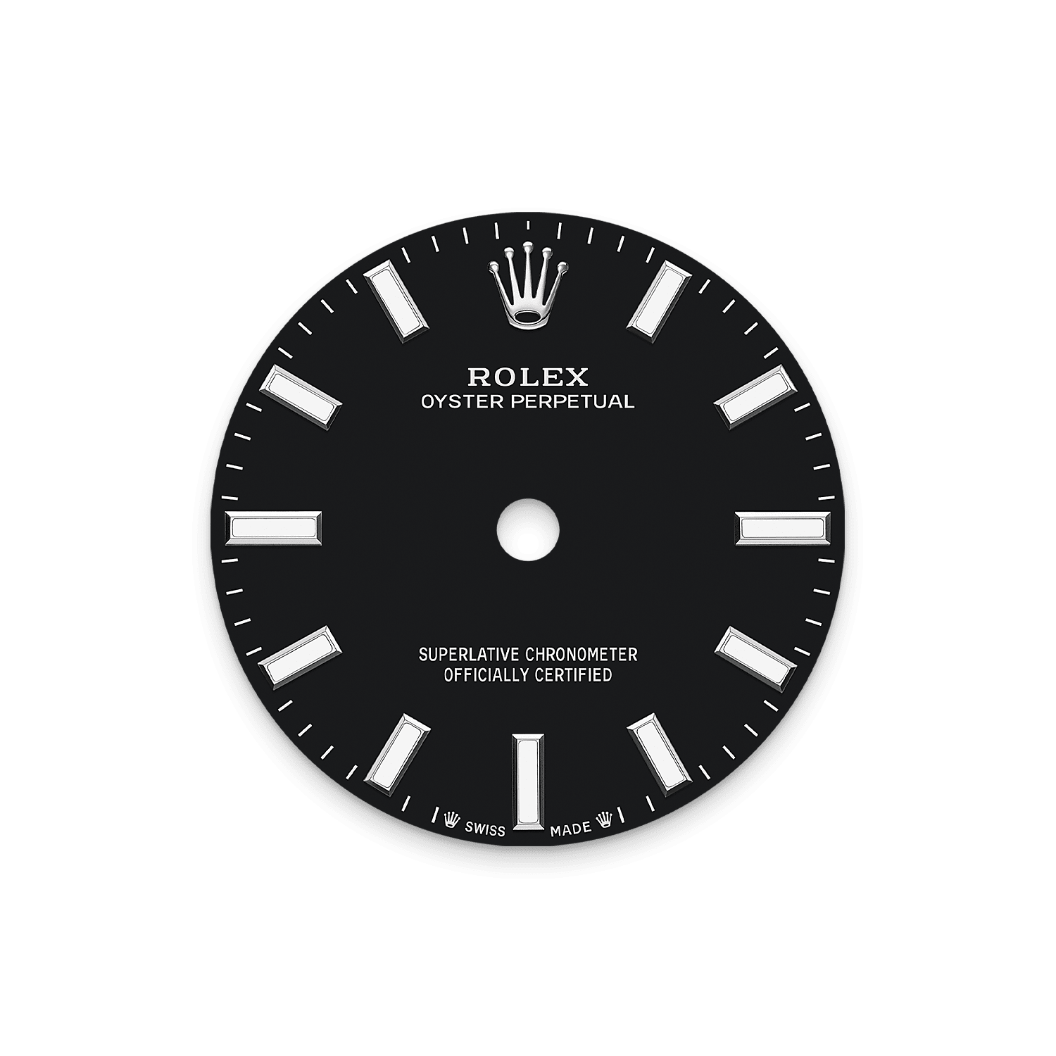 表盘底部的黄铜板逐步喷上六层的喷漆,形成均匀齐整的表面。最后一步是涂上油光漆,并进行抛光,呈现非凡光泽及深邃色调。随后表盘会移印不同字样,并以手工镶嵌钟点标记及皇冠。完美无瑕的新表盘会在腕表组装阶段中装配到机芯上。