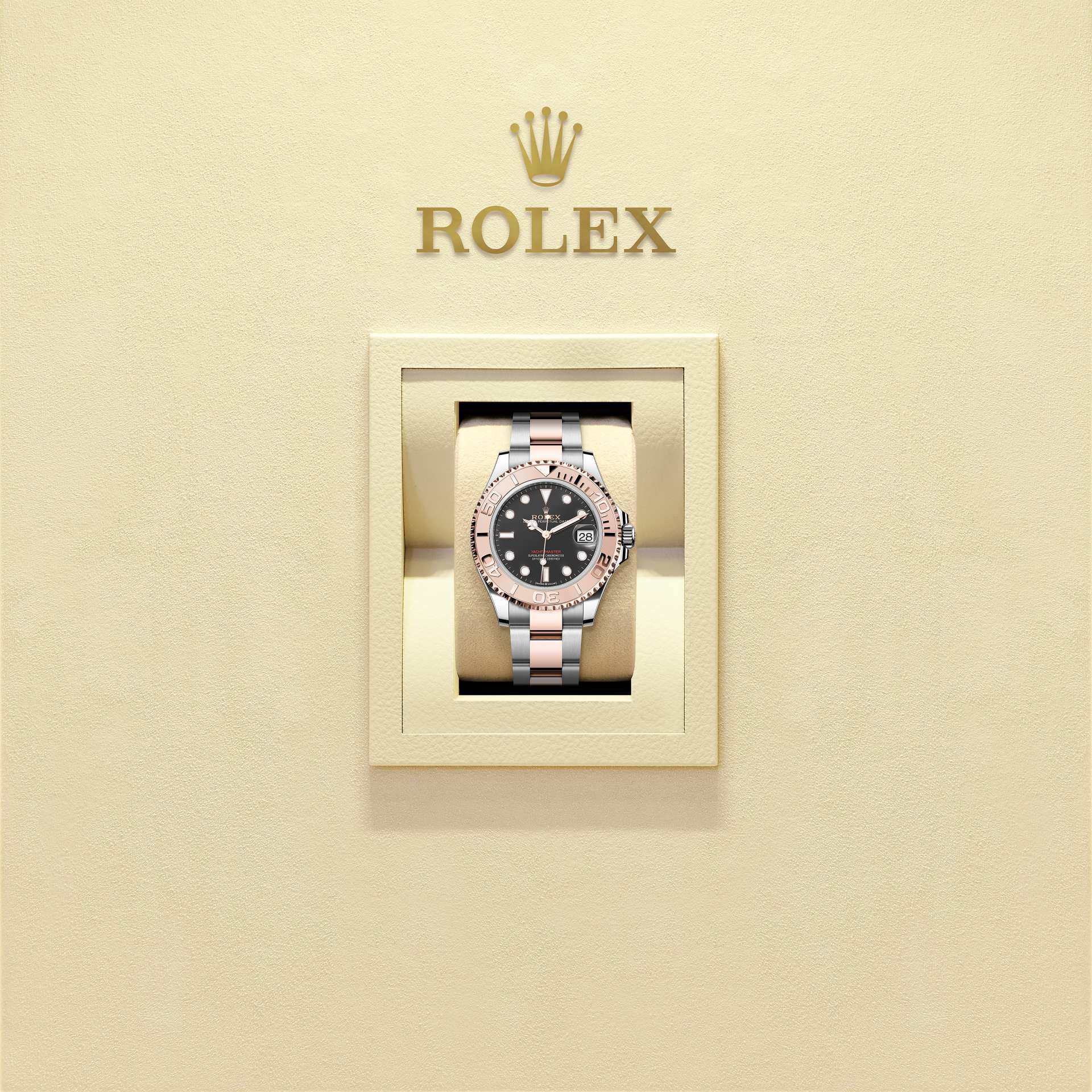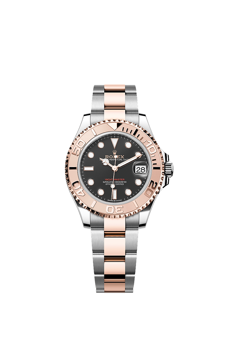 蚝式恒动游艇名仕型 37腕表永恒玫瑰金及蚝式钢款,搭配蚝式(Oyster)表带。