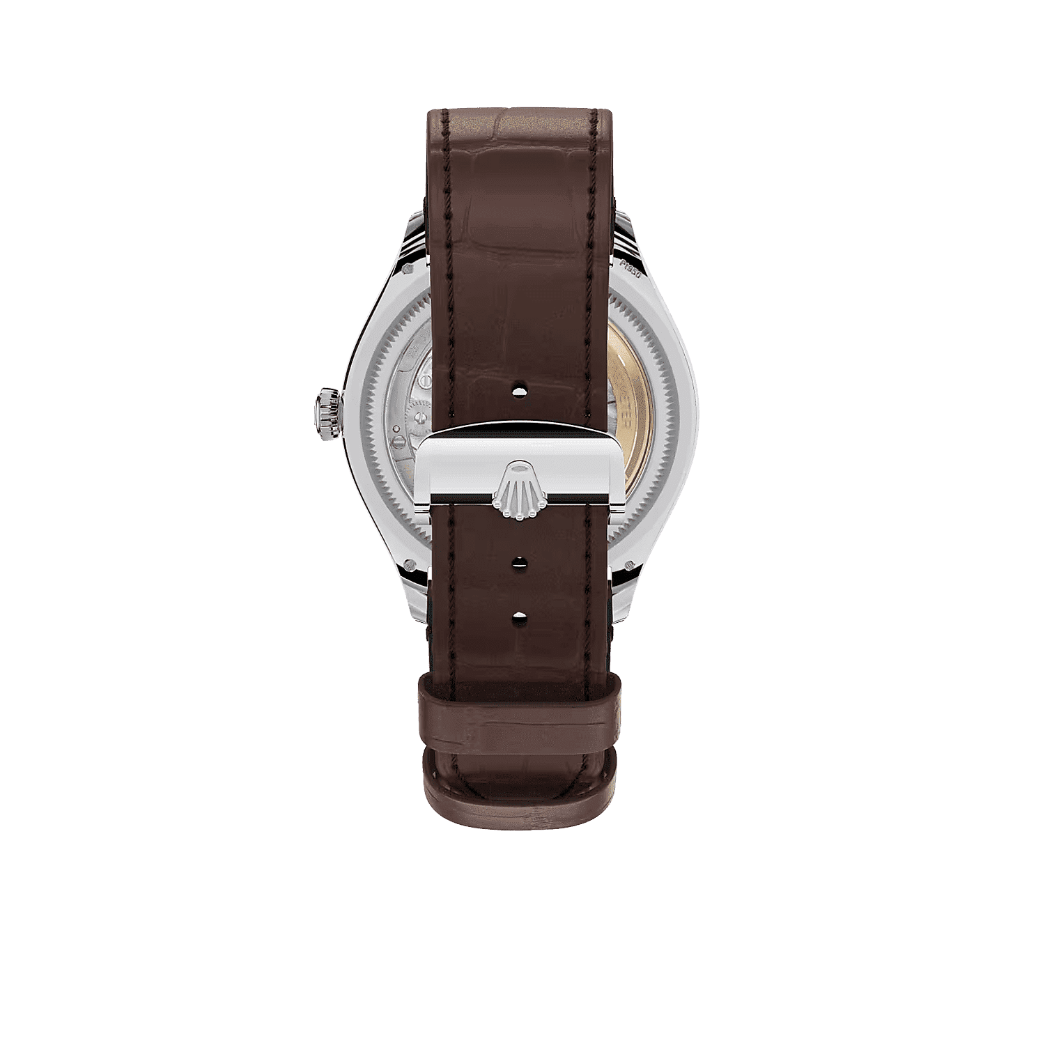 錶帶配有鉑金雙摺扣──雙帶扣(Dualclasp),扣型設計精妙,佩戴腕錶時,錶扣始終處於手腕正下方。
