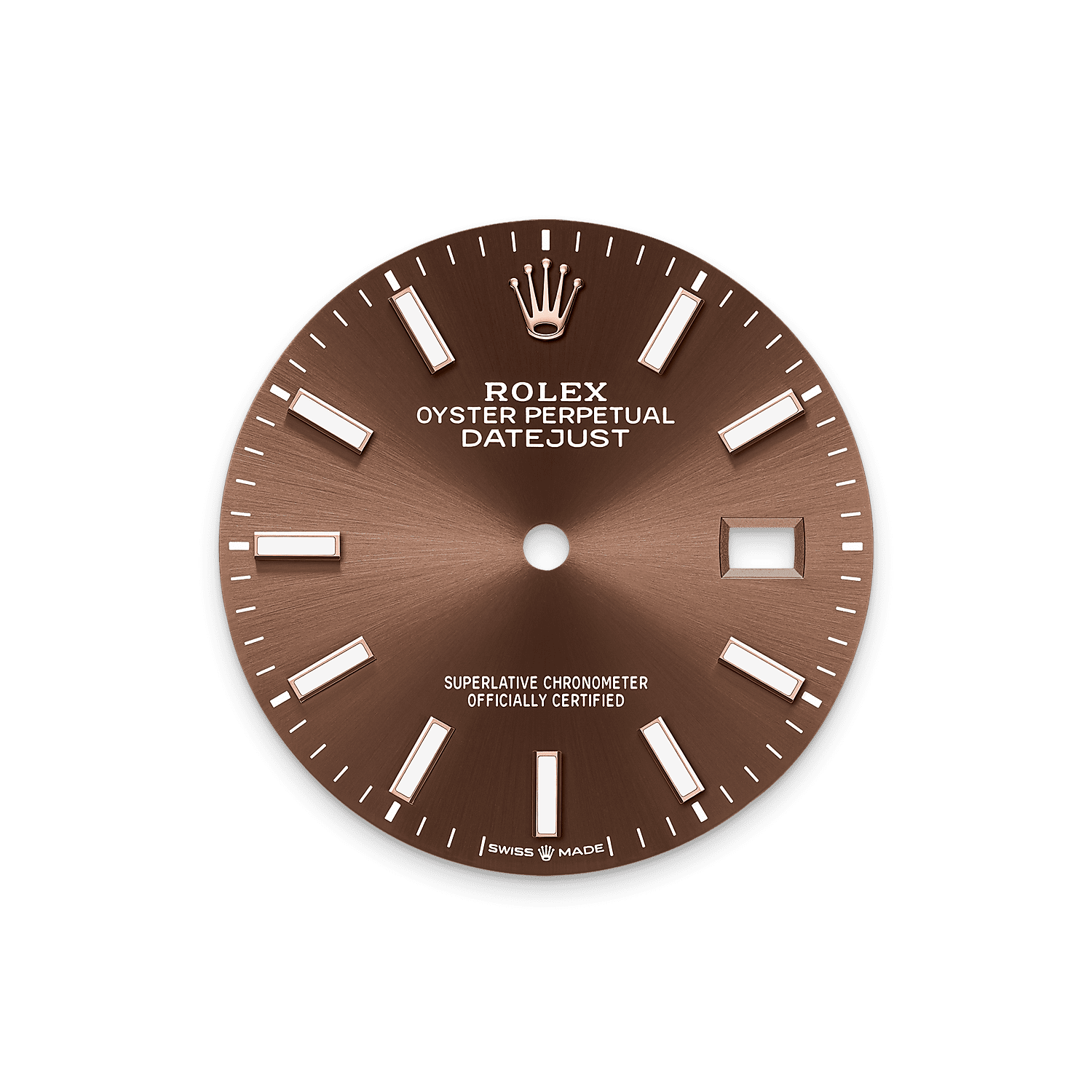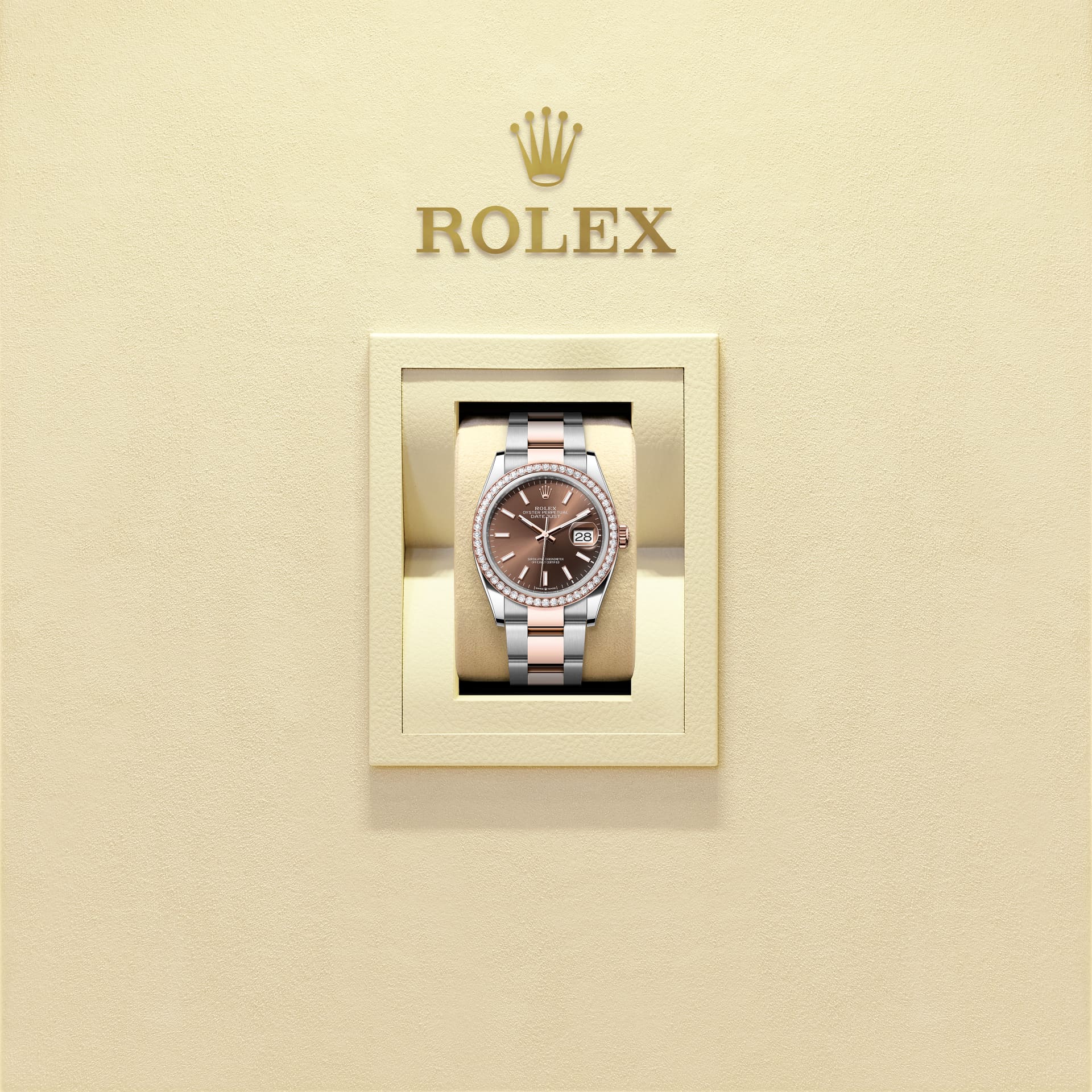 Oyster Perpetual Datejust 36腕錶永恒玫瑰金及蠔式鋼款,搭配巧克力色錶面及蠔式(Oyster)錶帶。