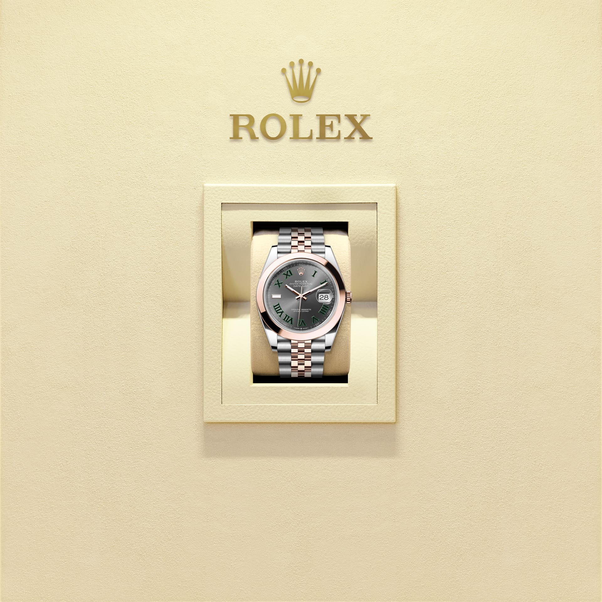 Oyster Perpetual Datejust 41腕錶永恒玫瑰金及蠔式鋼款,搭配石板灰色錶面及紀念型(Jubilee)錶帶。