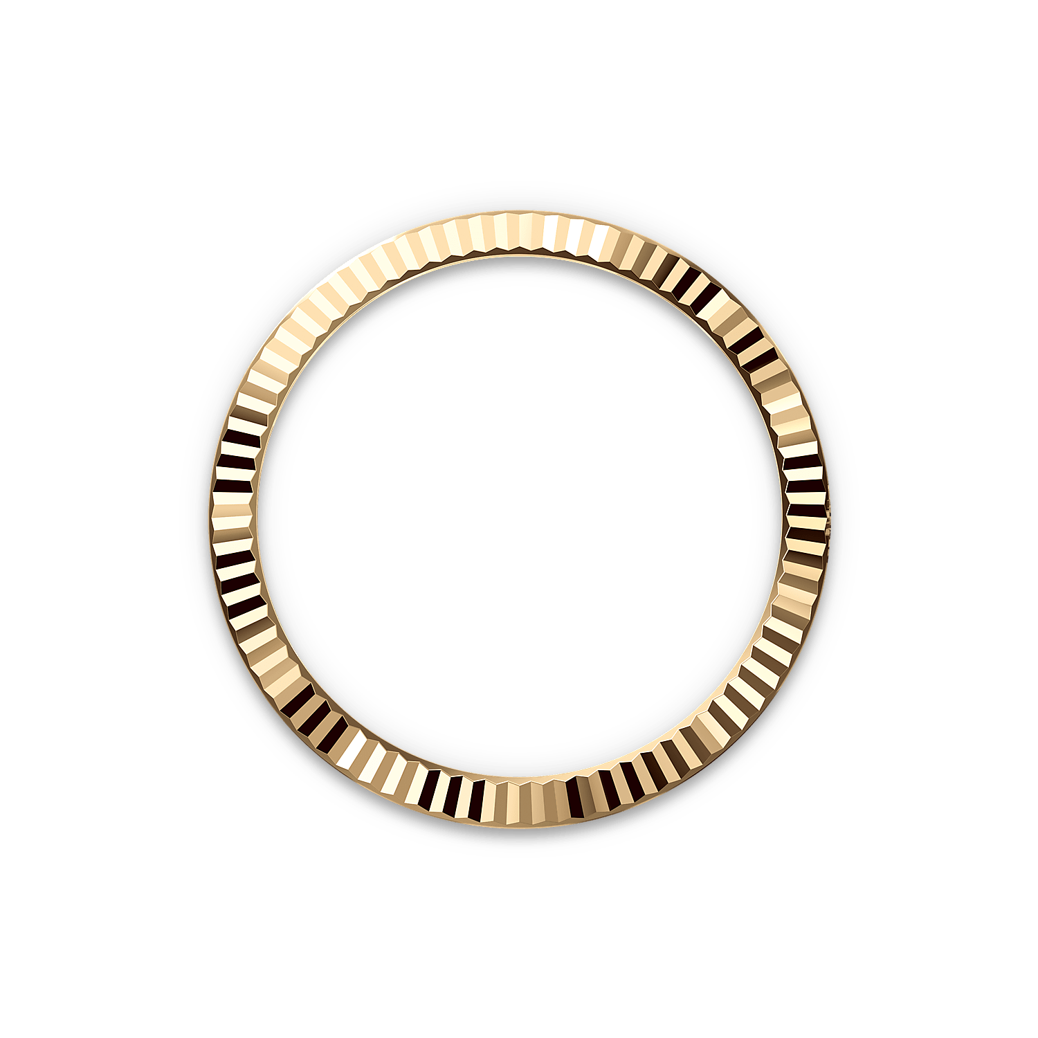而底蓋上可見的坑紋設計亦出於同樣目的,並以特定的勞力士工具旋緊於錶殼。及後,三角坑紋演變為一項美學設計元素,堪為勞力士的經典特色。時至今日,三角坑紋成為品牌腕錶的特色,這款Datejust 41的外圈以金製成。
