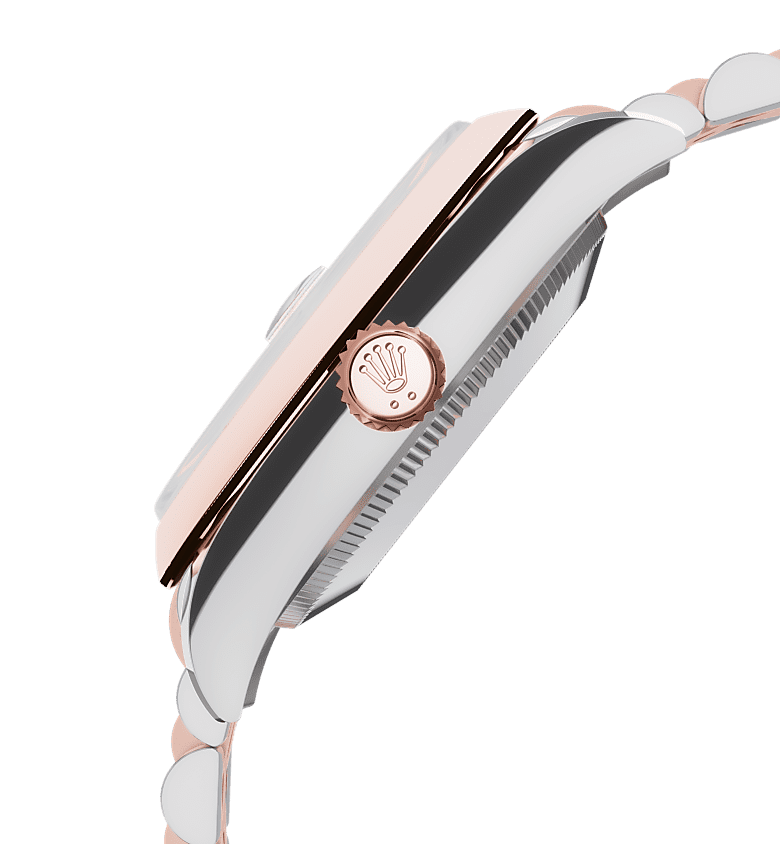 Oyster Perpetual Datejust 31腕錶永恒玫瑰金及蠔式鋼款,搭配鑲鑽茄紫色錶面及紀念型(Jubilee)錶帶。
