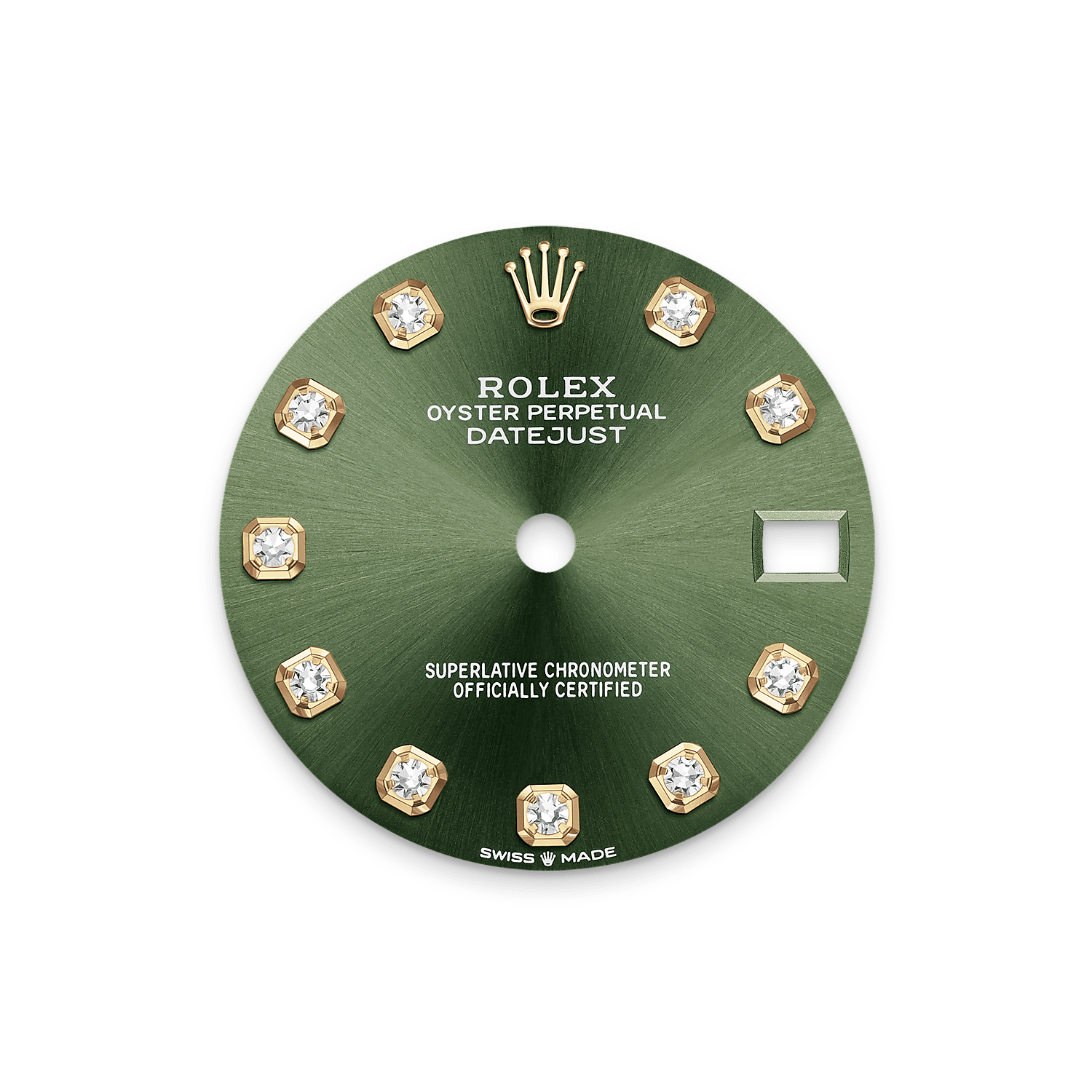 錶面設有18K金底座鑲托鑽石。蠔式系列的許多錶面款式均採用太陽光線效果,折射出淡雅光澤。這種效果需要超卓的刷光技術,打造從錶面中央往外擴展的刻紋。