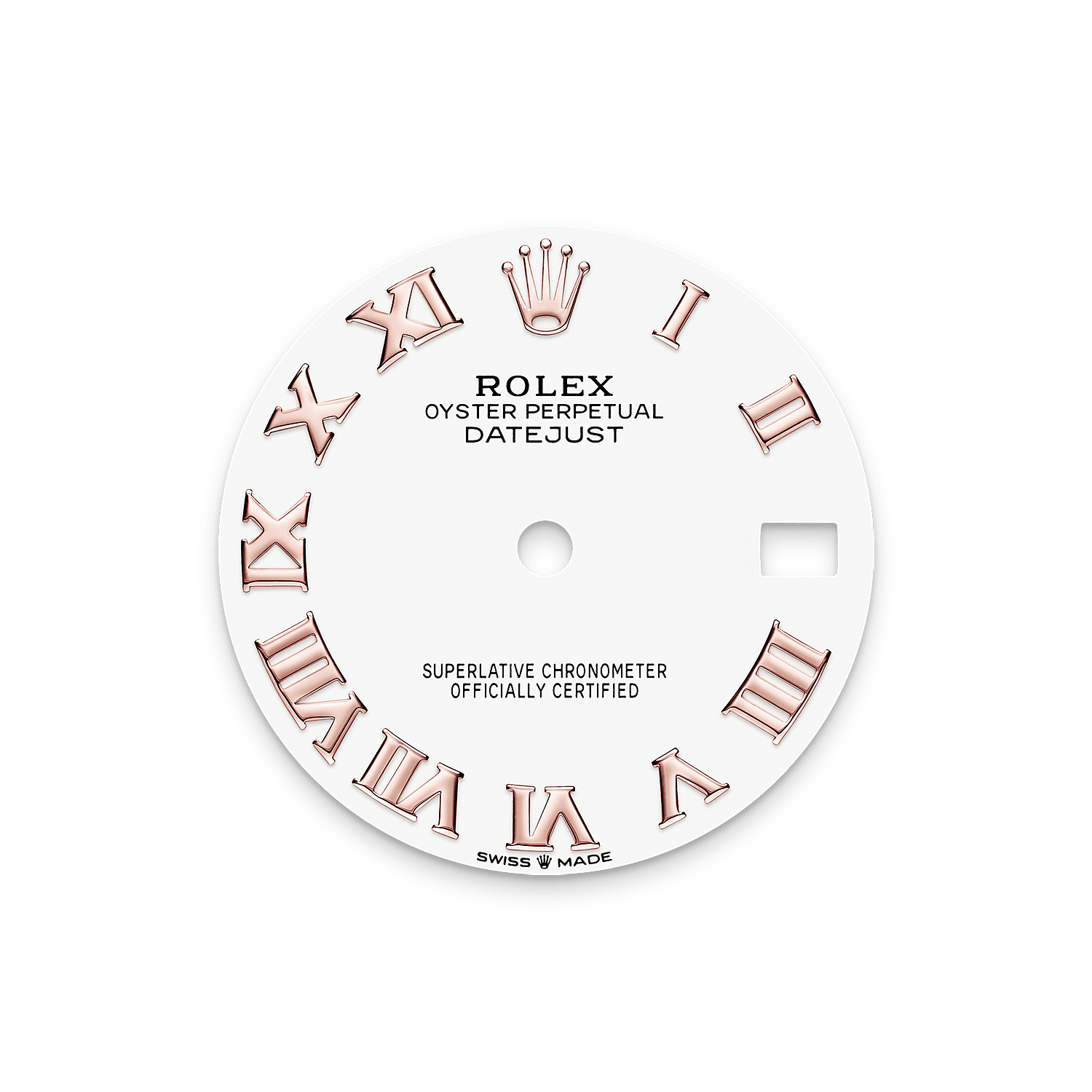 Oyster Perpetual Datejust 31腕錶永恒玫瑰金及蠔式鋼款,搭配白色錶面及紀念型(Jubilee)錶帶。