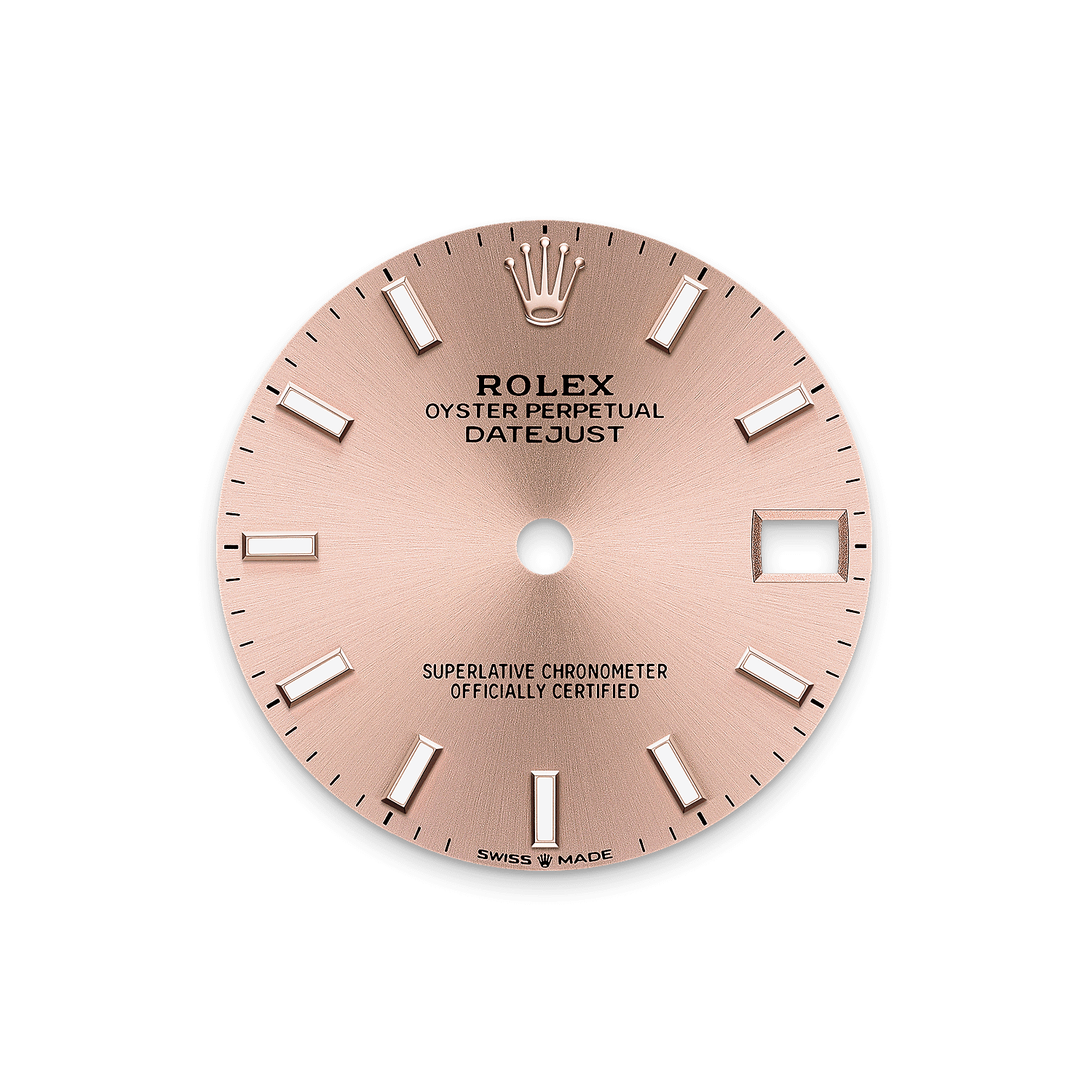 蠔式系列的許多錶面款式均採用太陽光線效果,折射出淡雅光澤。這種效果需要超卓的刷光技術,打造從錶面中央往外擴展的刻紋。