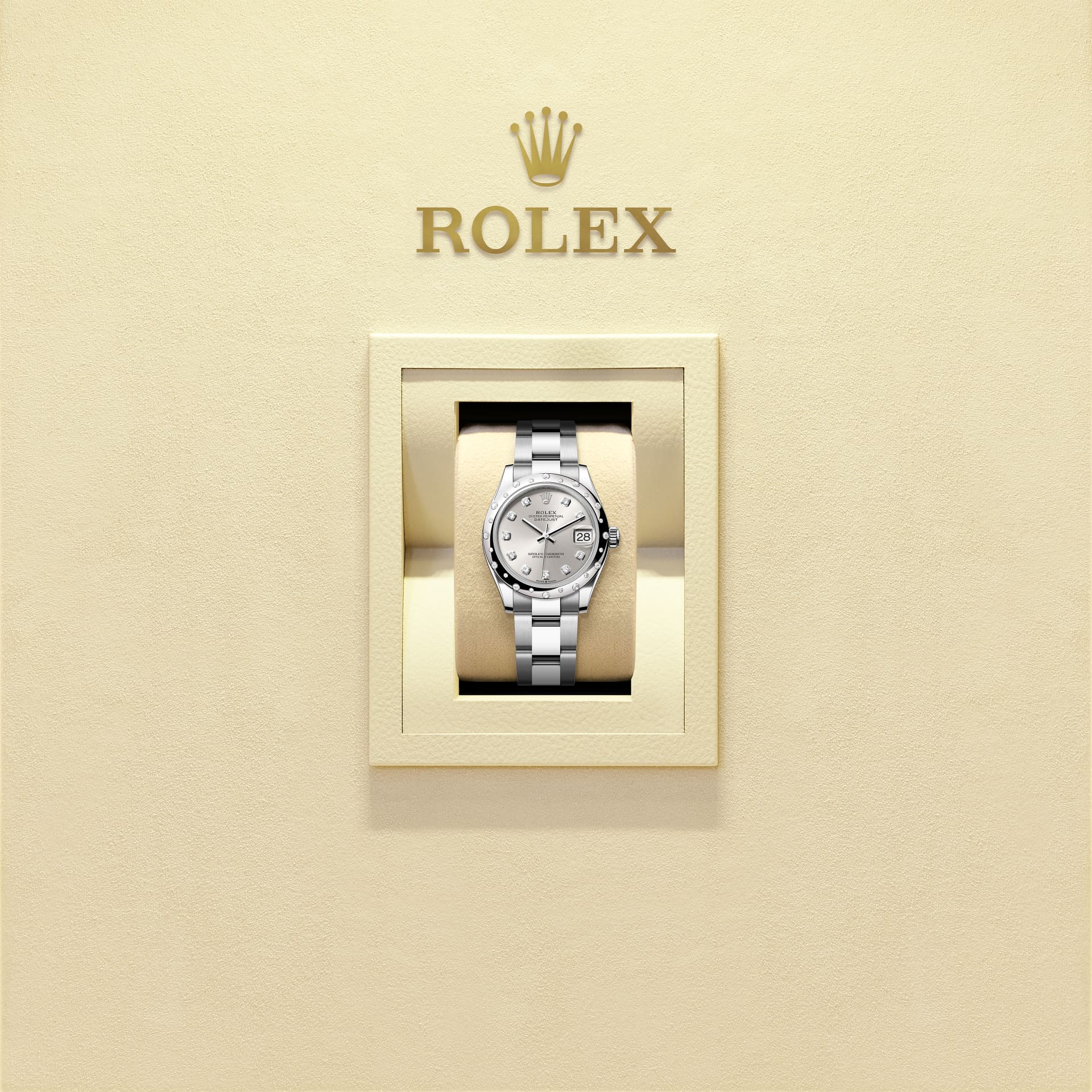 錶面設有18K金底座鑲托鑽石。蠔式系列的許多錶面款式均採用太陽光線效果,折射出淡雅光澤。這種效果需要超卓的刷光技術,打造從錶面中央往外擴展的刻紋。