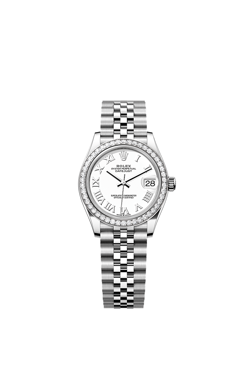 Oyster Perpetual Datejust 31腕錶白色黃金及蠔式鋼款,搭配白色錶面及紀念型(Jubilee)錶帶。