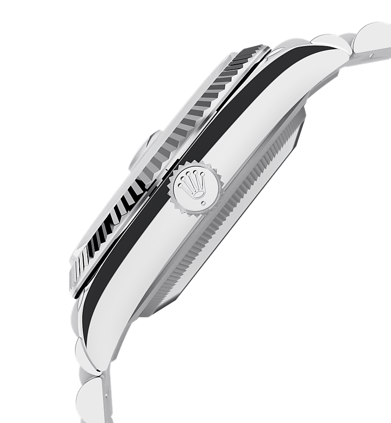 而底蓋上可見的坑紋設計亦出於同樣目的,並以特定的勞力士工具旋緊於錶殼。及後,三角坑紋演變為一項美學設計元素,堪為勞力士的經典特色。時至今日,三角坑紋成為品牌腕錶的特色,這款Day-Date 36的外圈以鉑金製成。