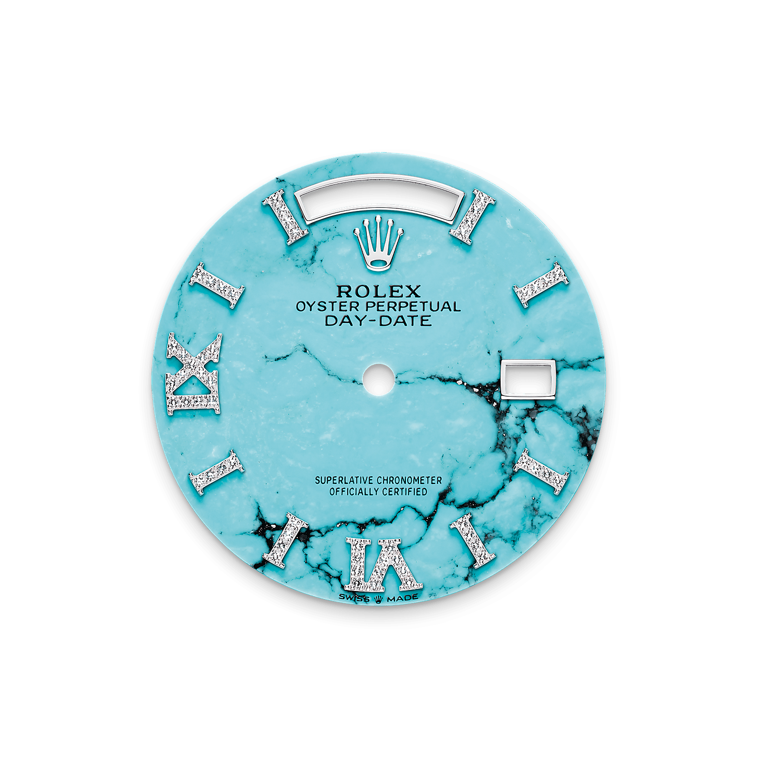 地球上只有少數地方出產僅綠松石,憑藉其獨特色調,綠松石數千年以來均獲視為瑰寶。綠松石的結構美觀,而且其稀有藍色亦能與黃金及白色黃金互相輝映,因而獲勞力士選用。此材質僅用於Day-Date 36金或鉑金款式。