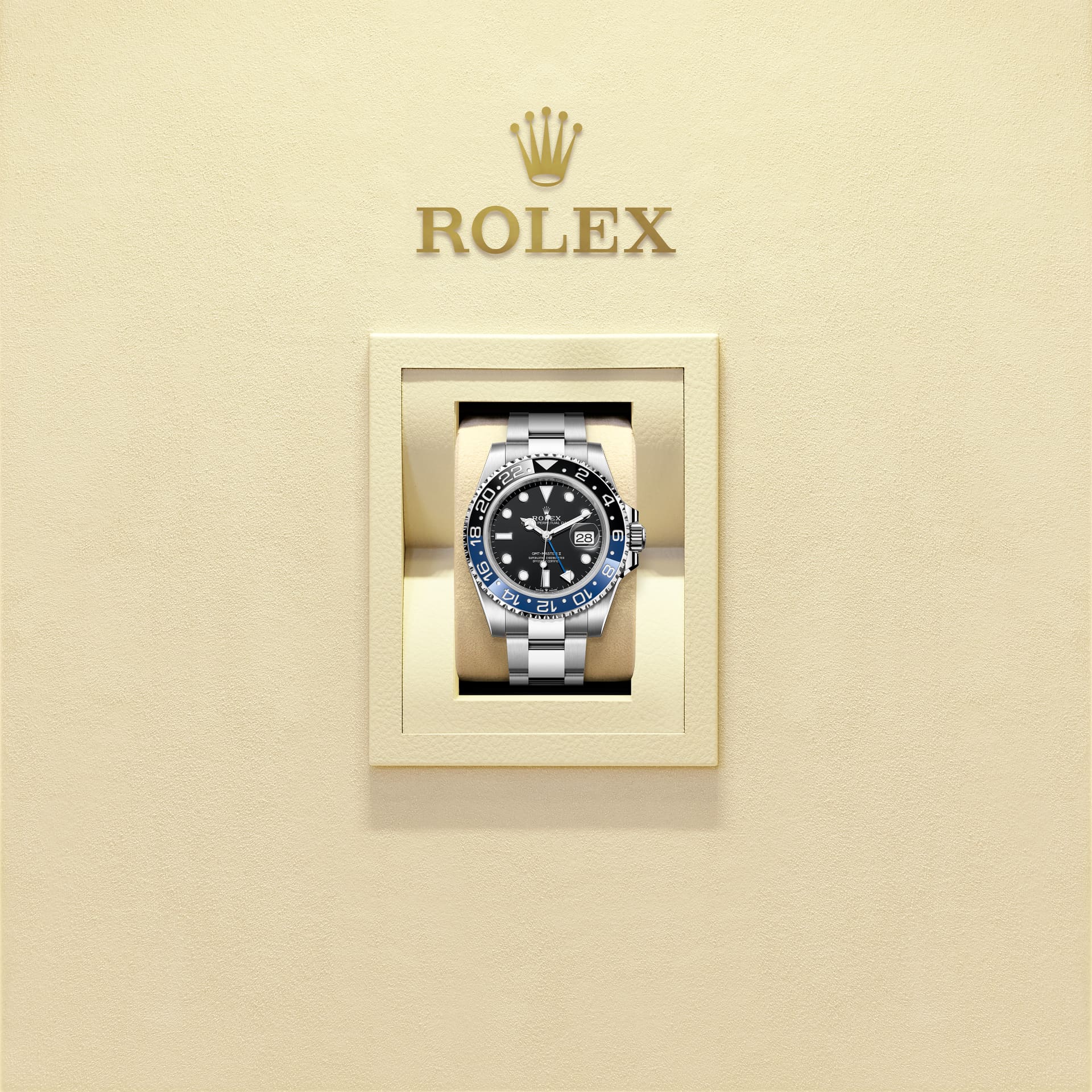此錶款配備黑色錶面和藍黑雙色Cerachrom陶質字圈。除了傳統時針、分針及秒針外,GMT-Master II腕錶還配備獨立24小時指針和24小時刻度雙向旋轉外圈。