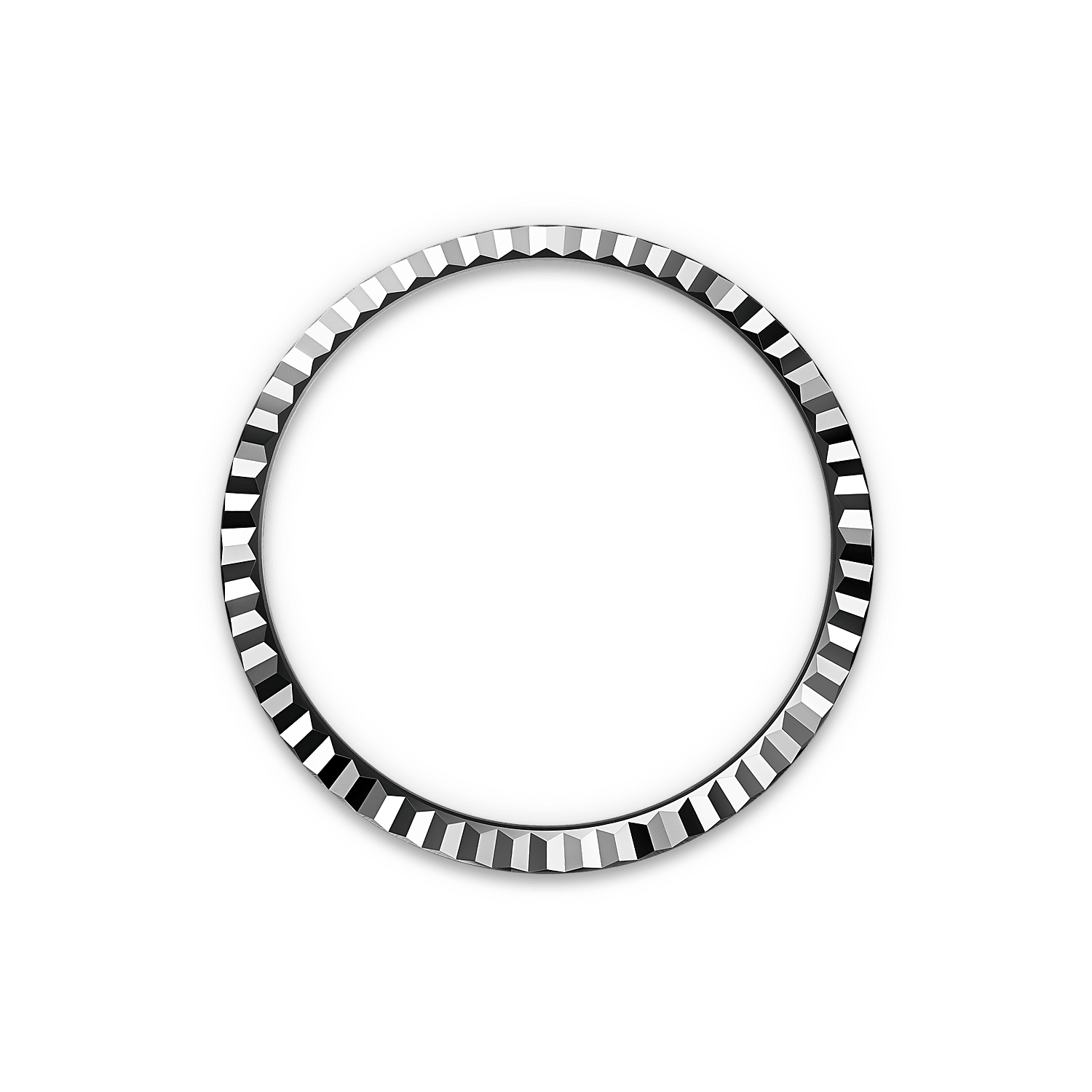 此外,錶帶外側鏈節及中層錶殼的頂部邊緣經倒角與磨光處理,宛若一道光芒流轉的閃耀光帶。錶帶配備隱蔽式摺疊皇冠帶扣。